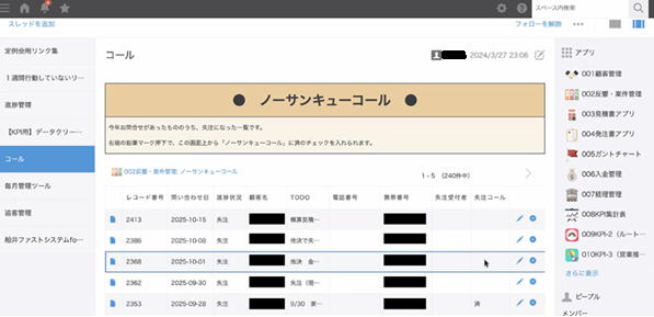 まず、以前の反省から「ほったらかしを防ぐ」ことに特化しました。kintoneを導入してまず変わったのは、私が増田に『あの案件どうなってる?』と聞くと、すぐに状況を共有できるようになったことです。