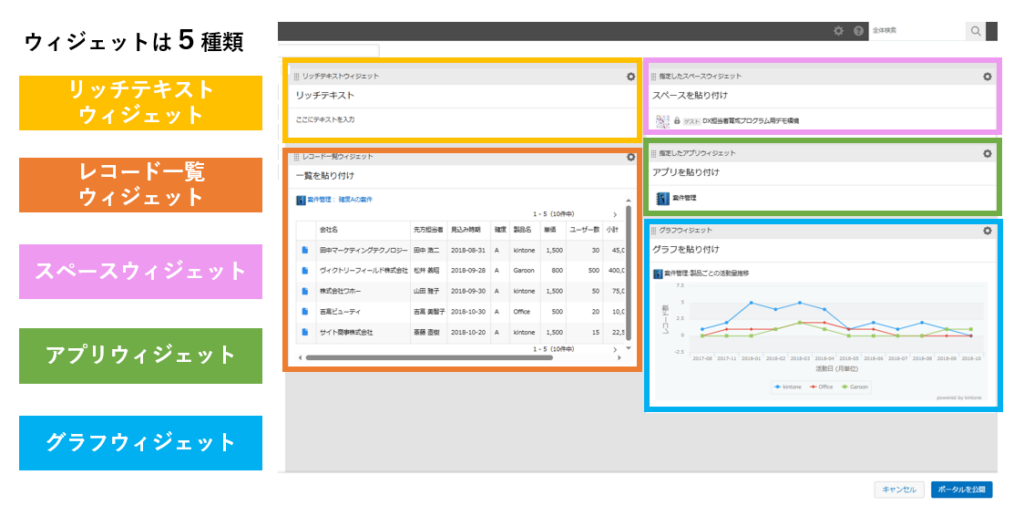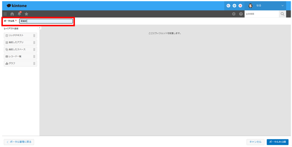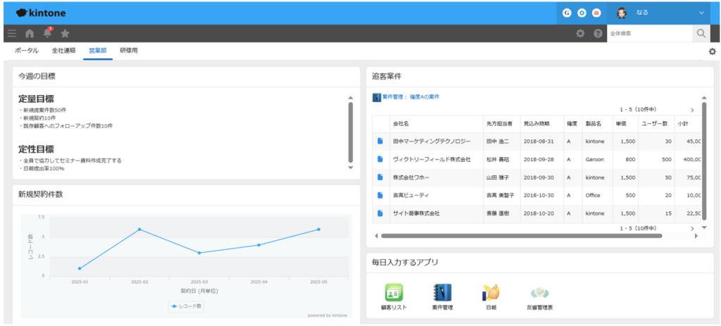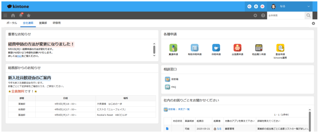 kintoneのトップページであり、すべての業務の入り口となる「ポータル」。