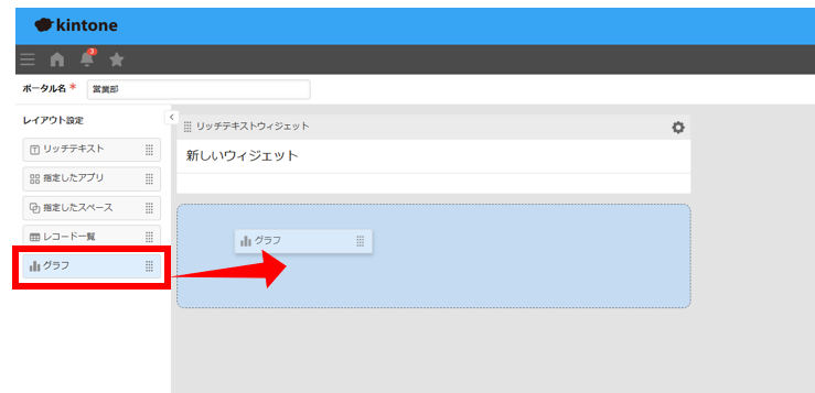 1.ウィジェット一覧から、追加したいウィジェットを選択し、配置先にドラッグします。