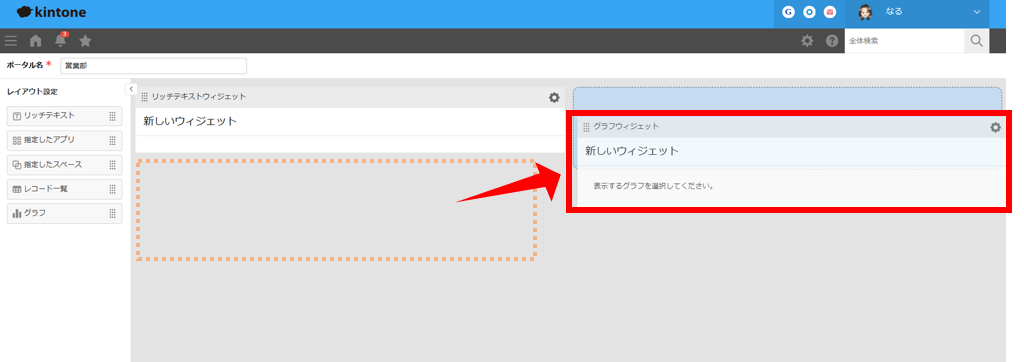 これまでのkintoneのポータルは、標準でレイアウトが決まっていましたが、今回のアップデートでは、ポータルのレイアウトを誰もが直感的に、簡単に変えられるようになりました。