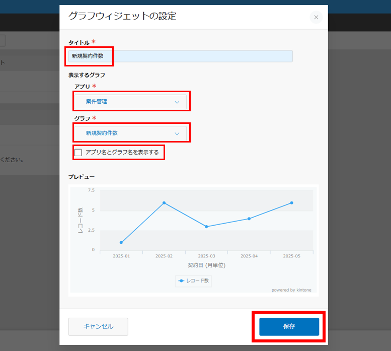 2.各ウィジェットの設定画面で、設定を編集し、[保存]をクリックします。