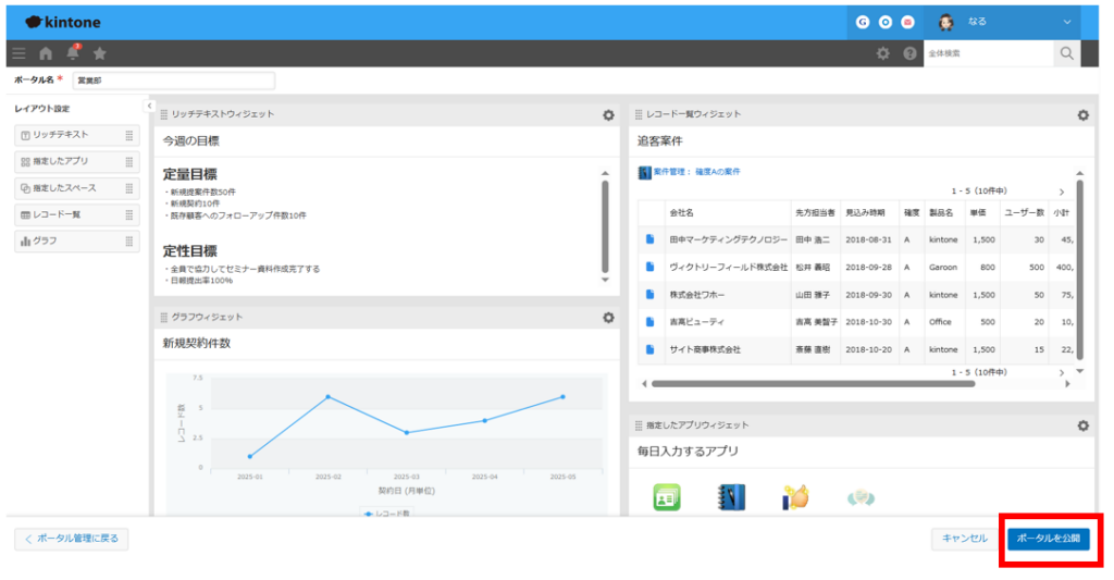 部署の進捗状況、営業チームの目標管理、開発チームの進捗共有など、目的に応じて最適なポータルを複数作成・運用できそうですね!