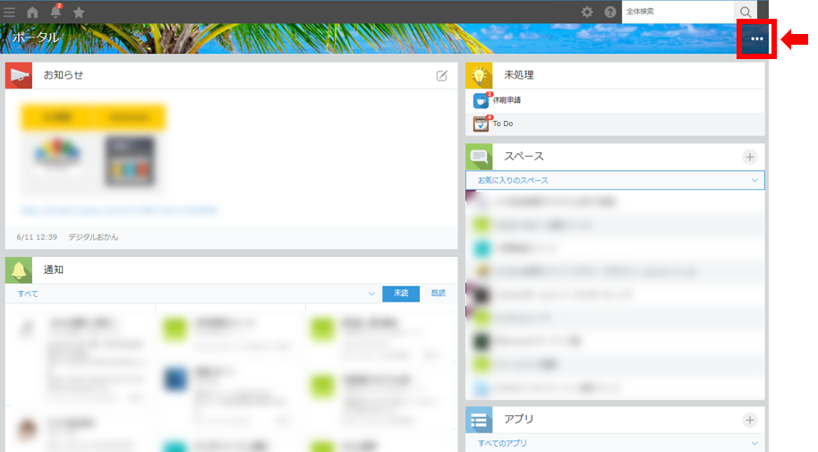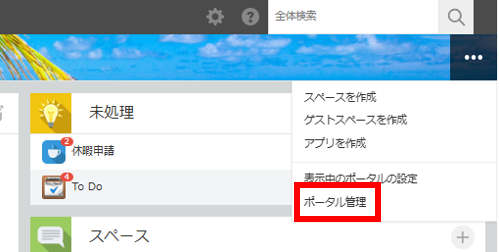 1.ポータル画面右上にある[オプション]アイコン(3つの点の形)をクリックし、[ポータル管理]をクリックします。
