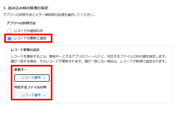 「3. 読み込み時の処理の指定」で、まずは「アプリへの反映方法」を選びます。