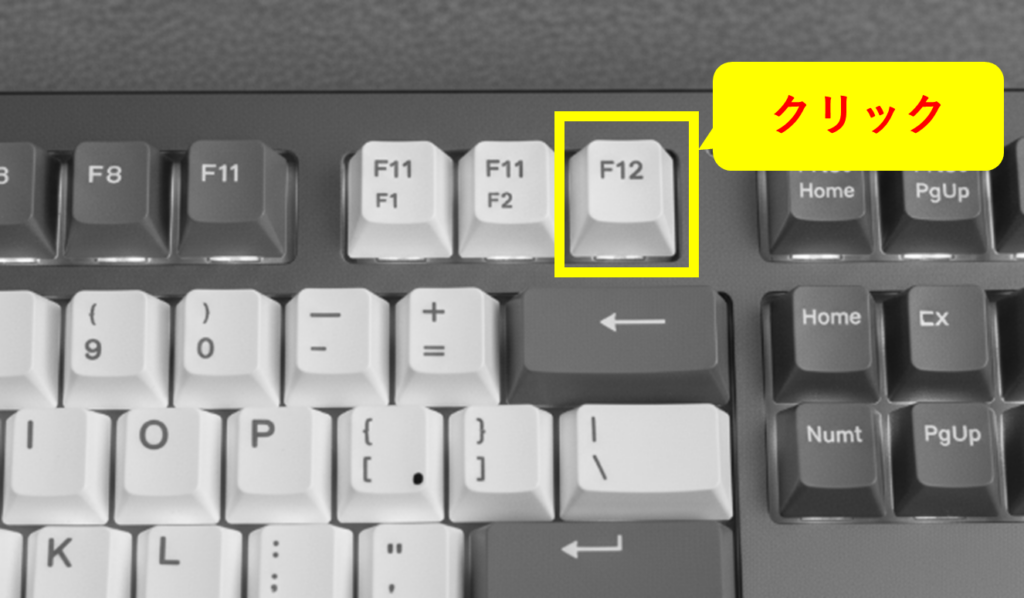 (1)キーボードの「F12キー」をクリック