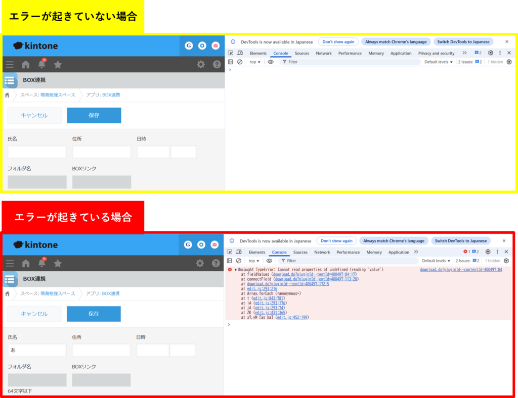 何かしらの操作をしてエラーが起きている場合は、同じ操作を行い意図的にエラーを起こす必要があります。