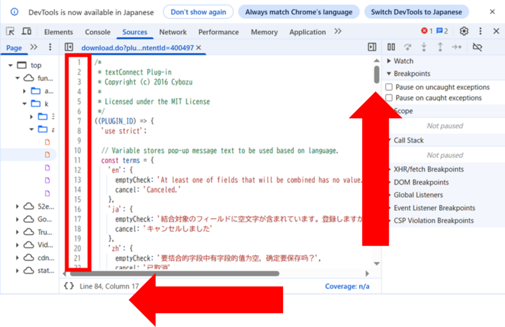 ここで、1行目から表示されていないとプラグインの特定が出来ないので、必ず1行目から表示されていることを確認してください!