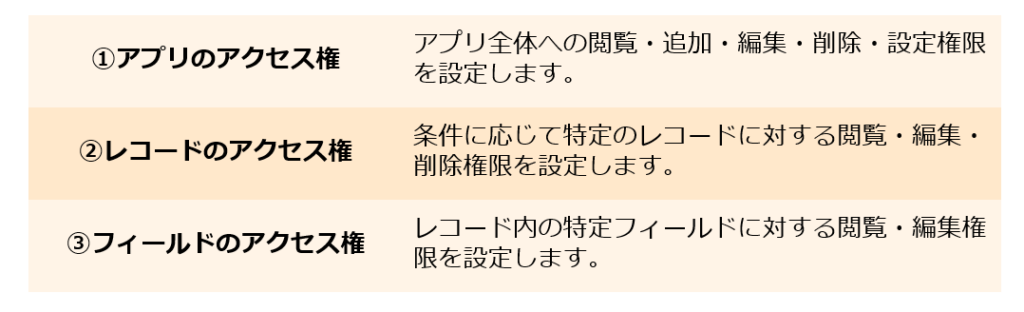 kintoneには次の3段階のアクセス権が用意されています。
