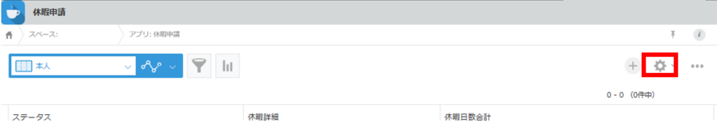 1.「レコードの一覧」画面で、画面右上にある歯車の形をした「アプリを設定」アイコンをクリックします。