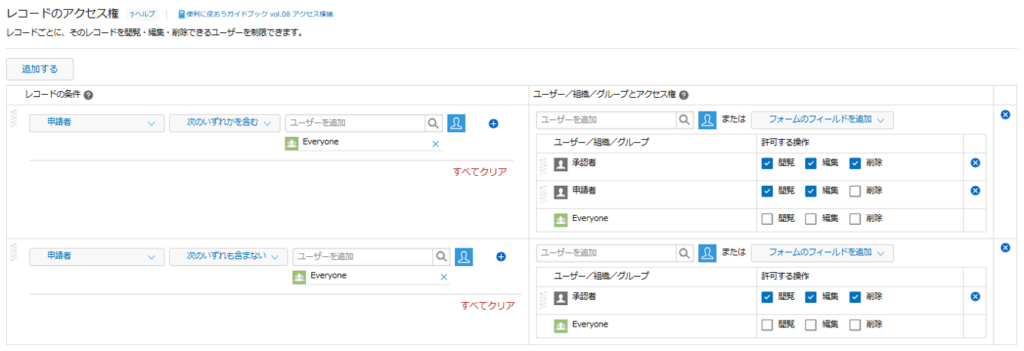 『本人のレコードだけ表示できるアクセス権』の設定方法