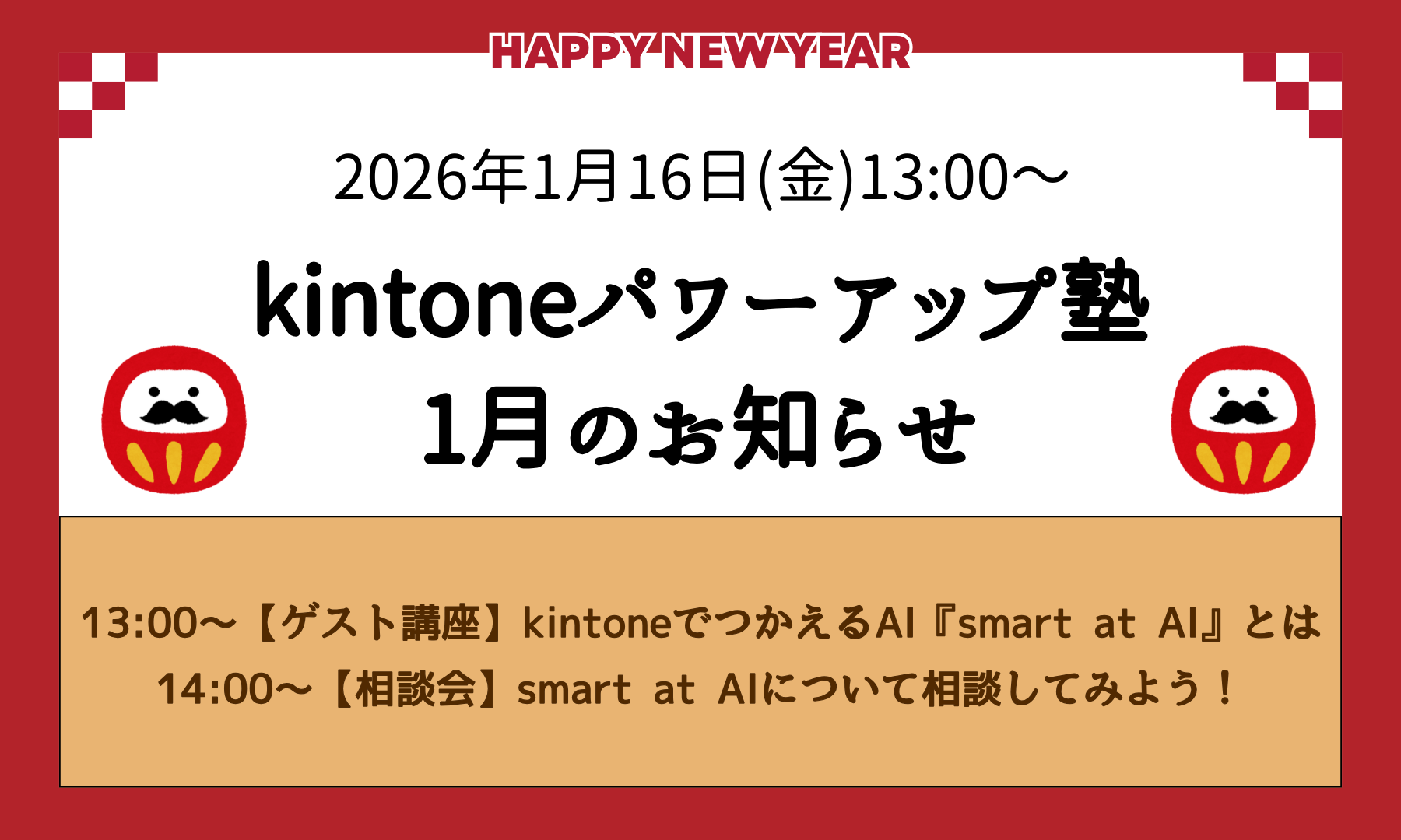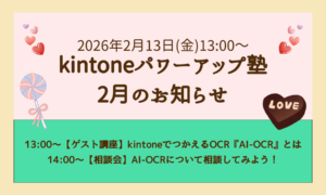 2026年1月のkintoneパワーアップ塾は1月16日(金)に実施いたします。