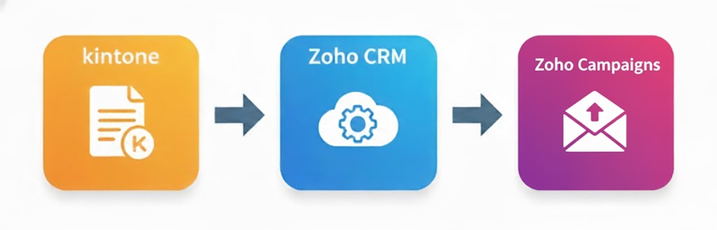 kintoneに蓄積された顧客データを、Zohoが提供するマーケティングツールや営業支援ツールにも、利用できるようになります!
